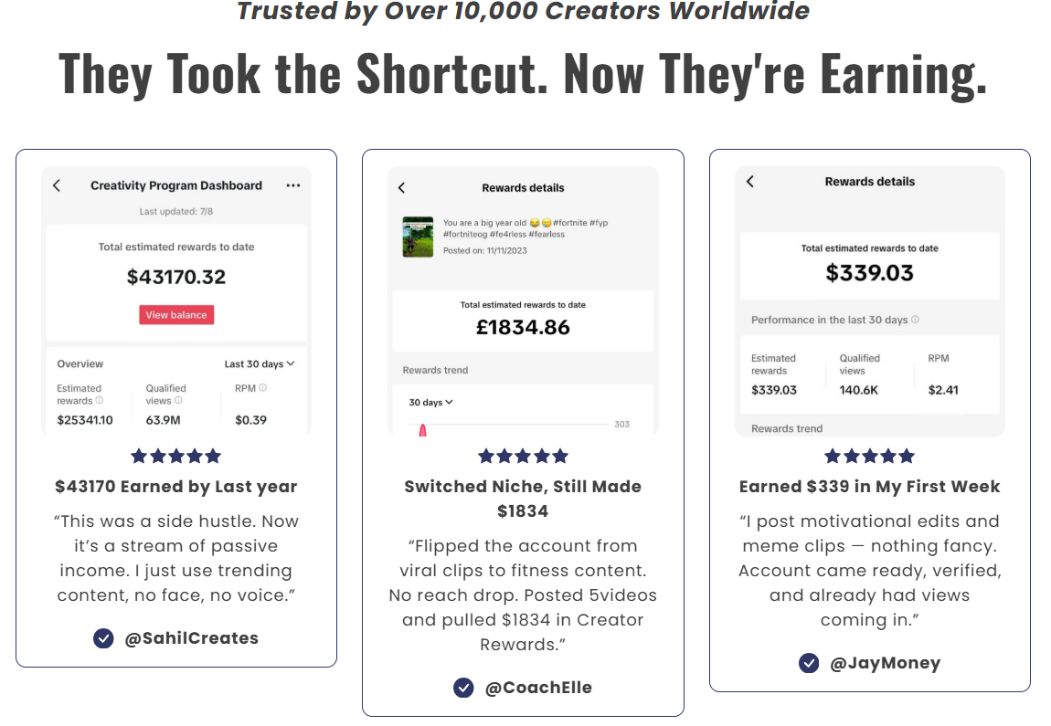 Pre-approved accounts with real followers. Start earning ad revenue on your first post.